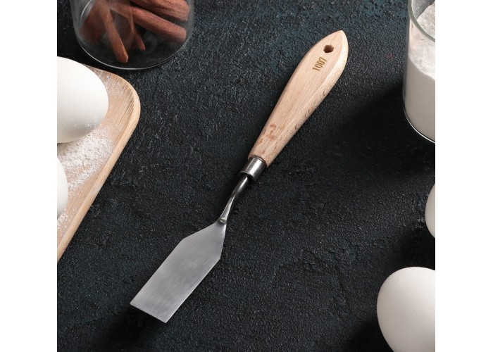 Предмет позволяет аккуратно формировать украшения из крема и мастики и отделять выпечку от края противня.